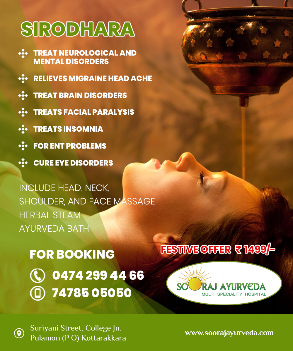 Sooraj Ayurveda Research Foundation is located at the prime location of Kottarakara. Anyone can reach here easily through Suriyani Street, on the way to Meenpidippara [KSTDC Eco Tourism].